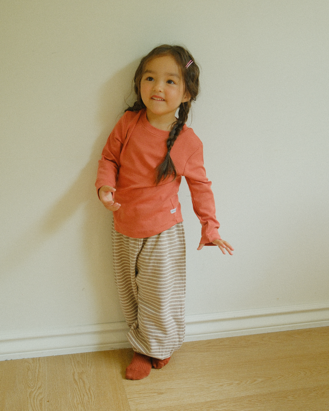 - 여유로운 실루엣으로 이지 캐주얼 팬츠로 입었을 때 귀엽고 사랑스러운 핏입니다.