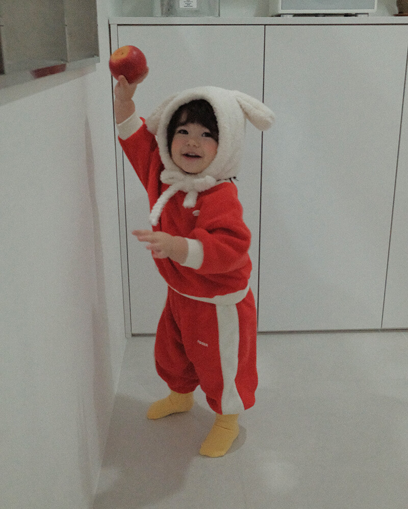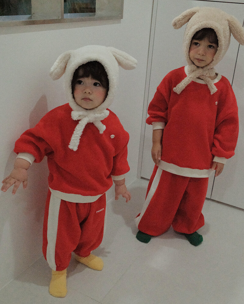 - 겉면은 테리소재, 안감은 후리스 소재로 되어 몽글몽글 사랑스러운 소재감에 보온성까지 갖췄습니다.