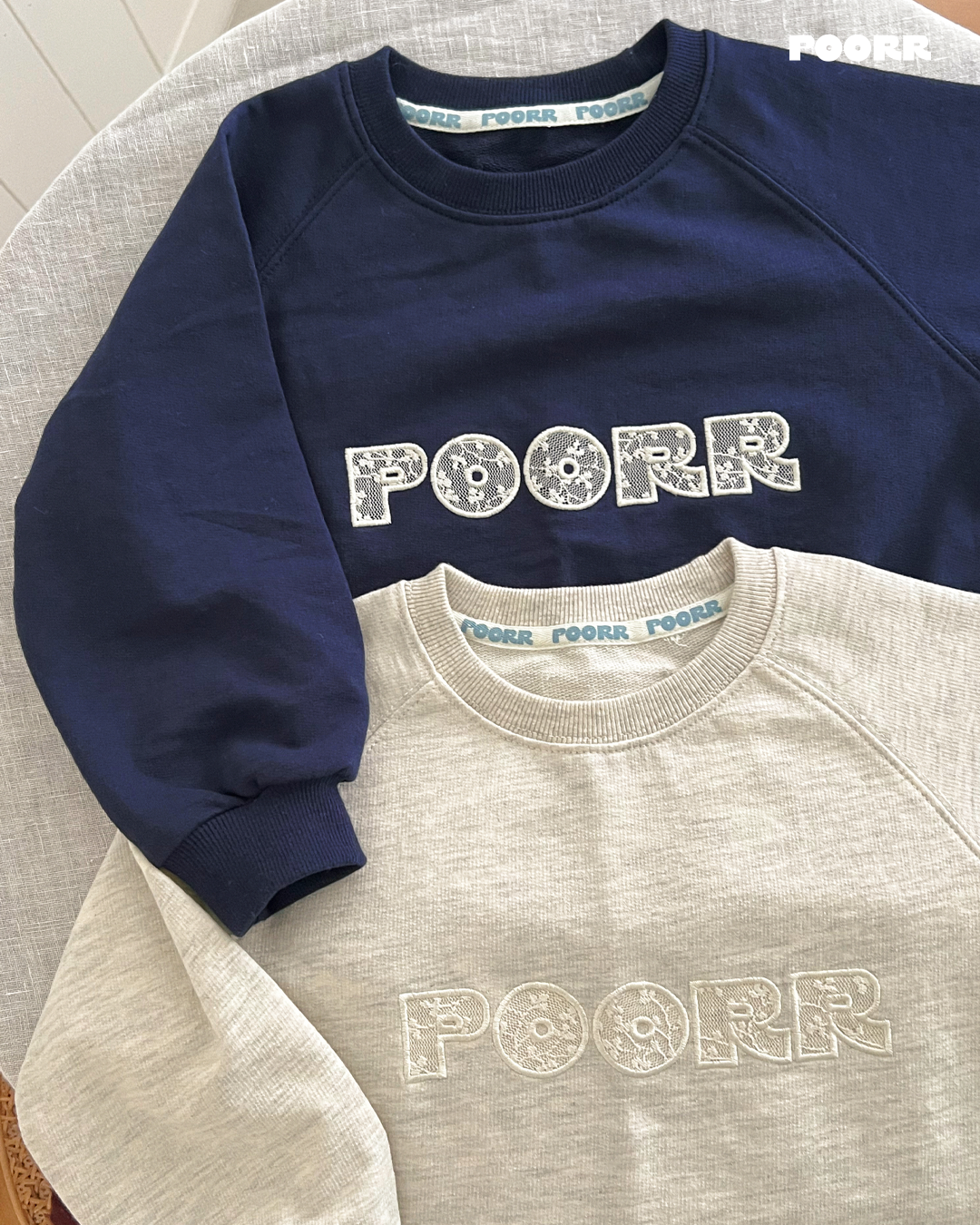 - 레이스 아플리케 자수와 밑단 레이스로 로맨틱한 무드의 맨투맨입니다.