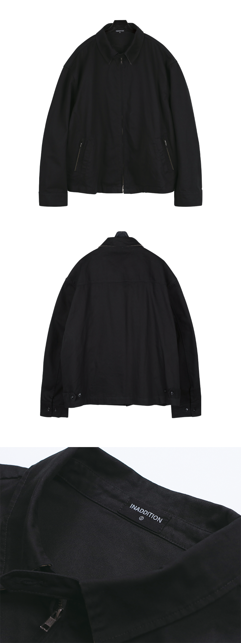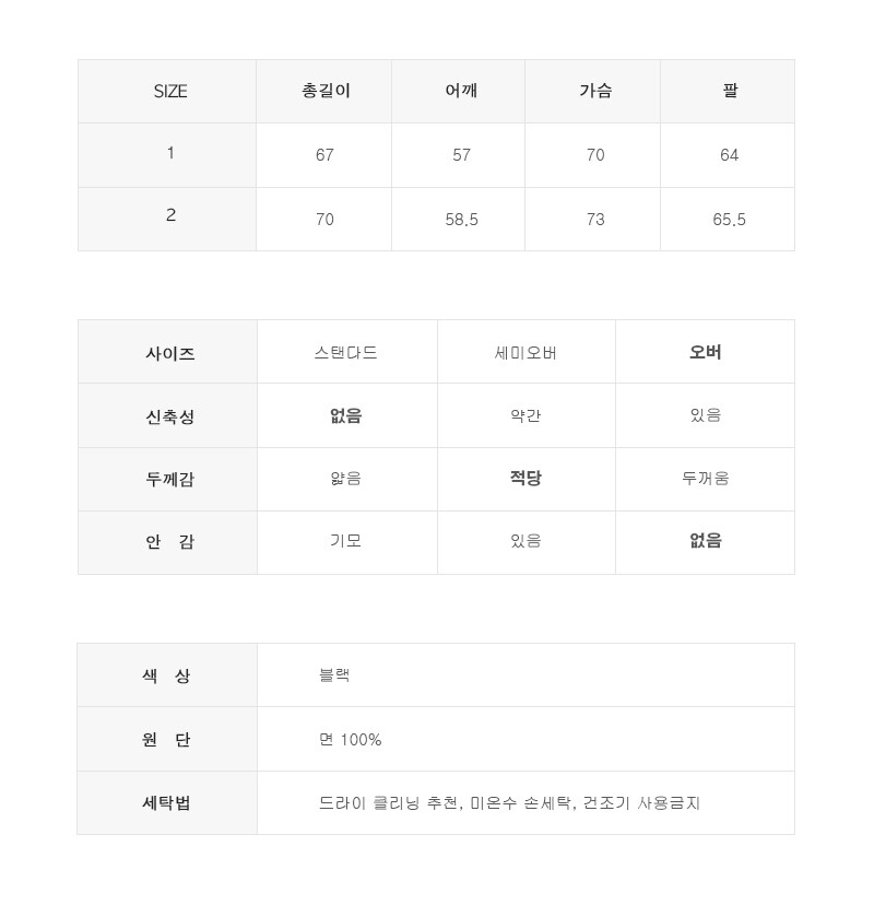 활동성이 좋은 오버핏으로 심플한 디자인에 사이드 지퍼쪽 지퍼디테일로 포인트를 주었습니다.