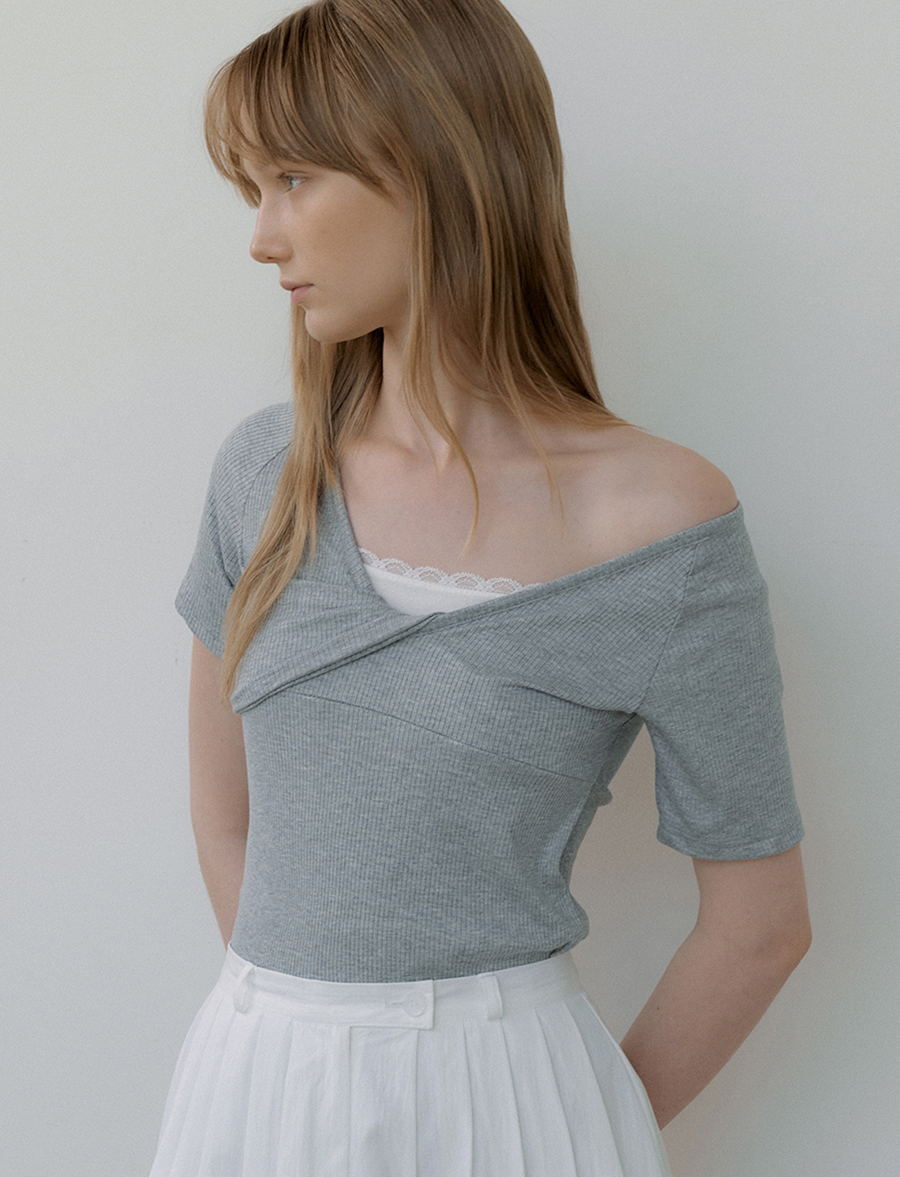 deep V-neck raglan T-shirt (melange gray) orc 6017