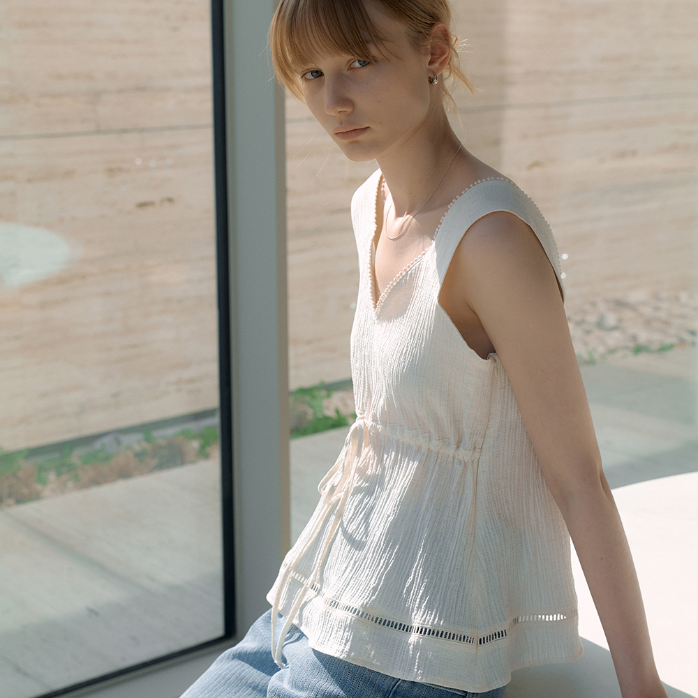 lace combi sleeveless blouse (oatmeal) orc 6024
