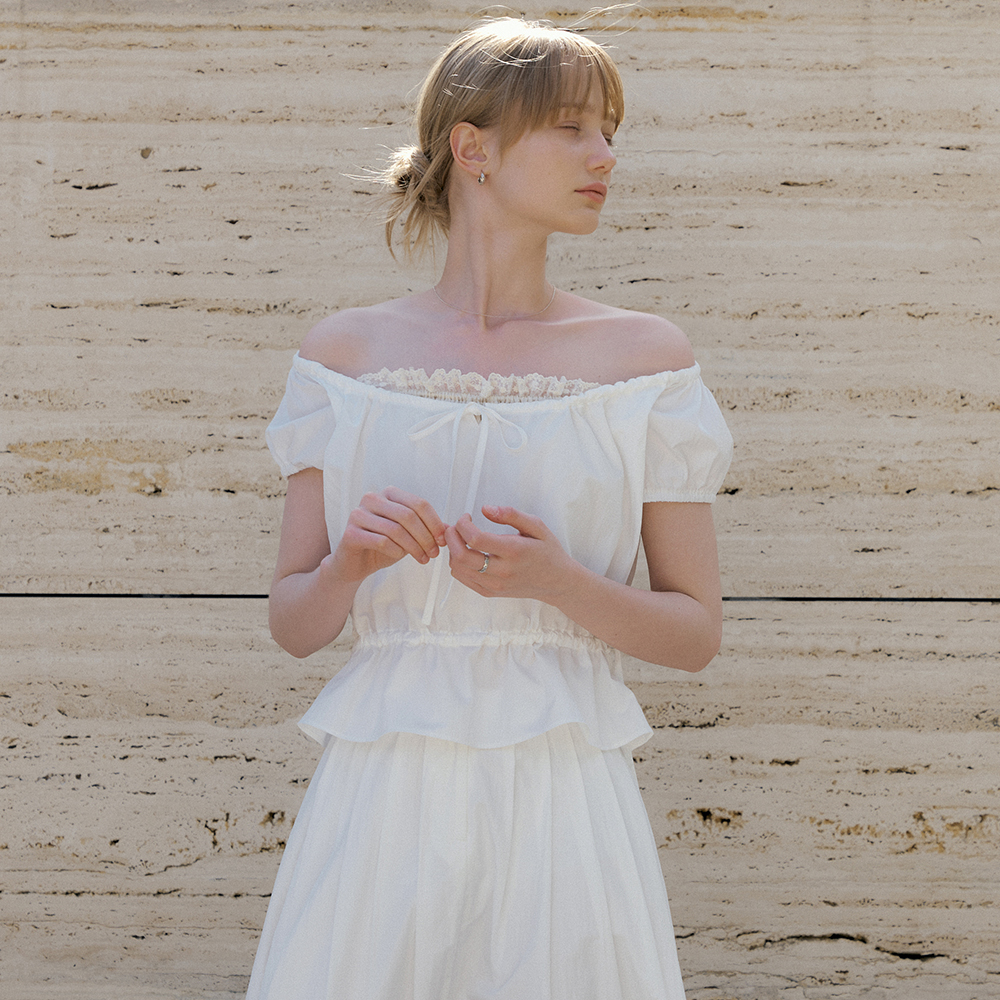 lace shirring 2-way blouse (white) orc 6026