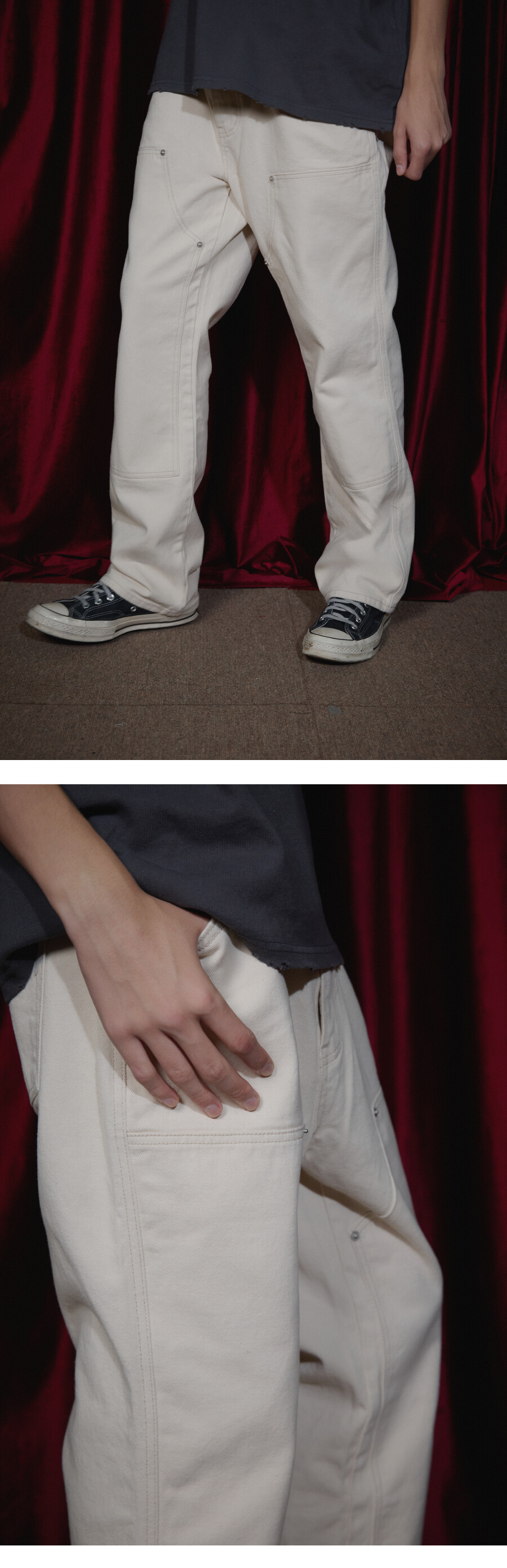 프리미엄 7수 코튼 원단을 사용하여 제작한 더블니 워싱진 입니다.
