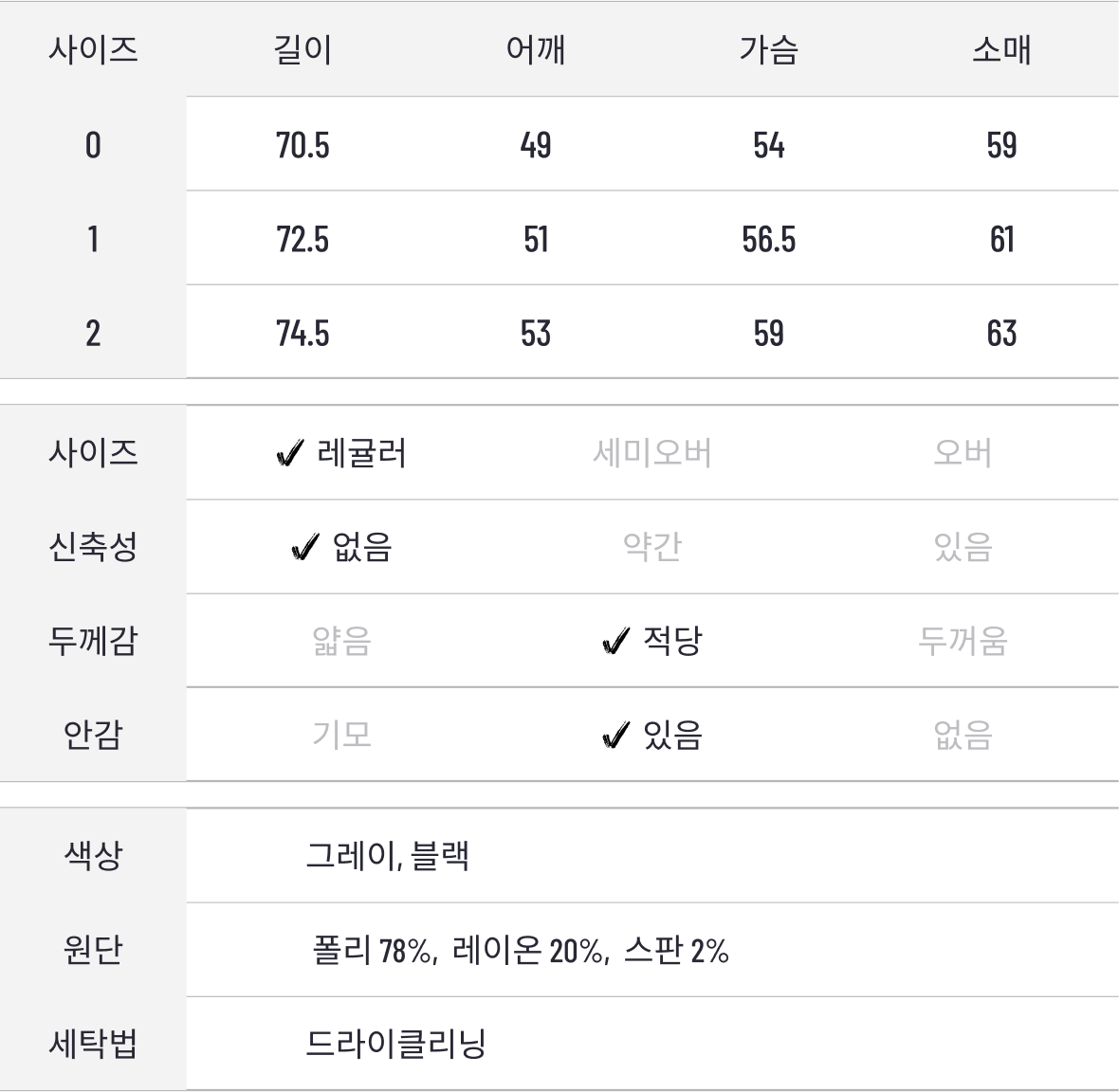 원 단 폴리 78%, 레이온 20%, 스판 2%