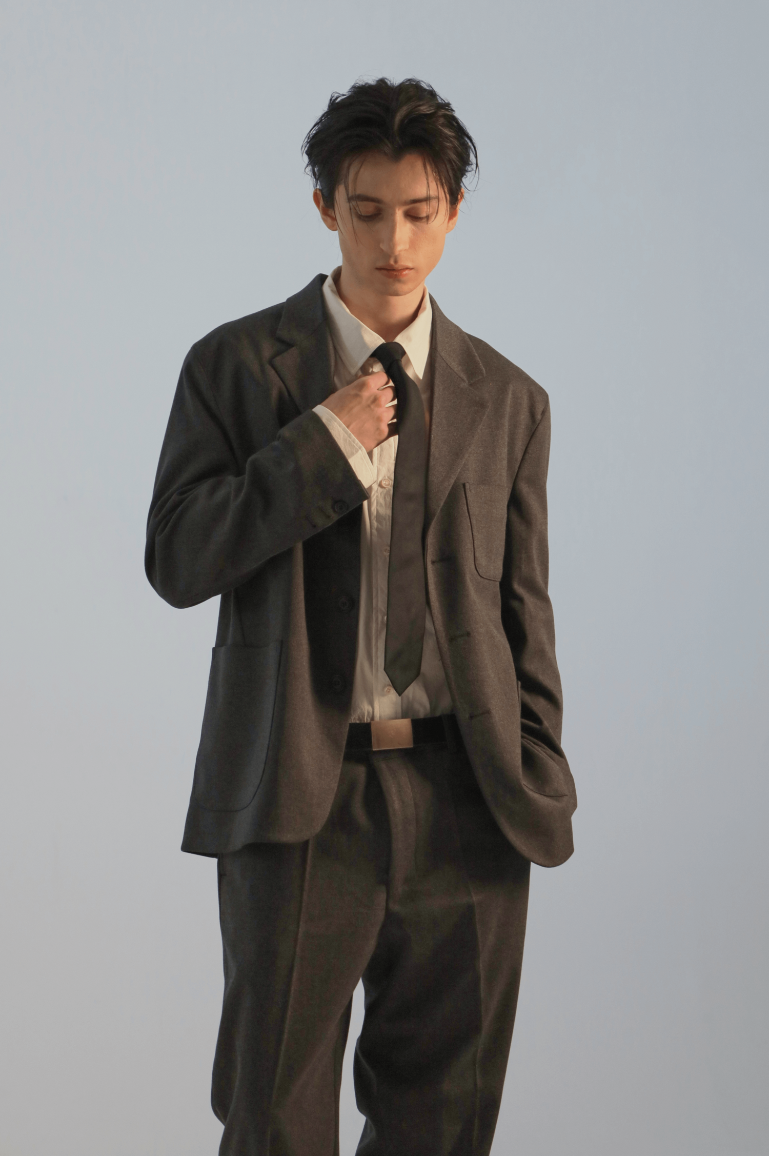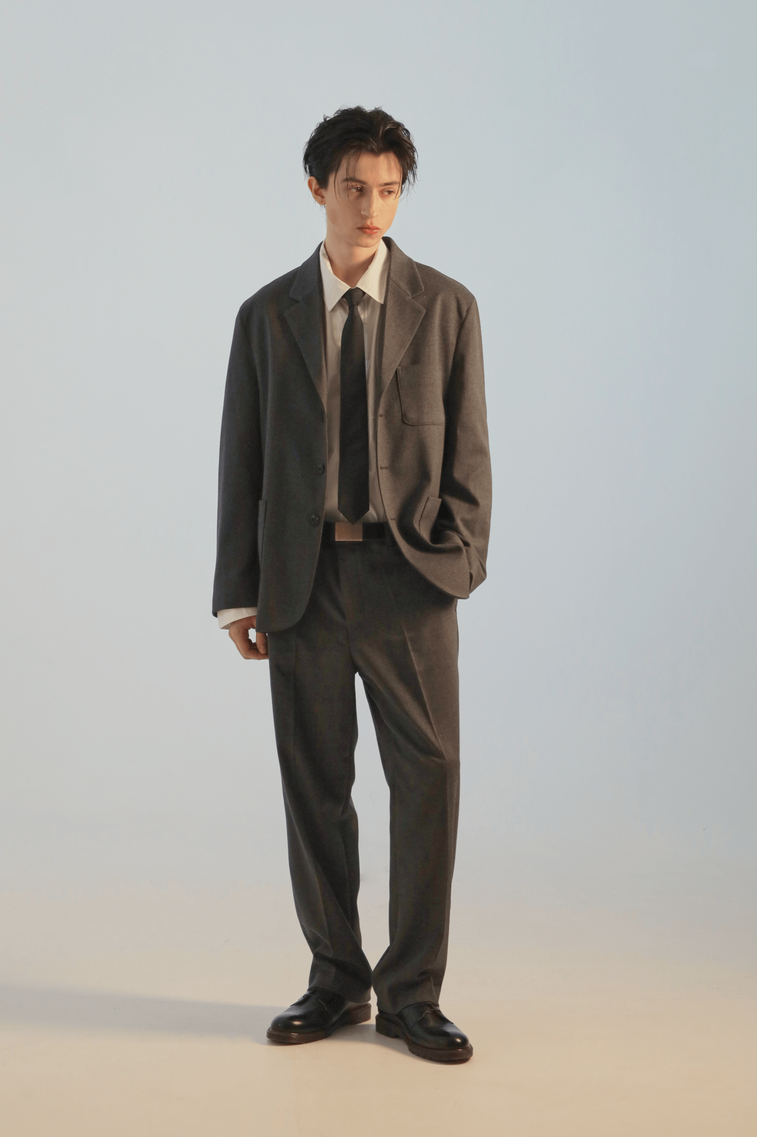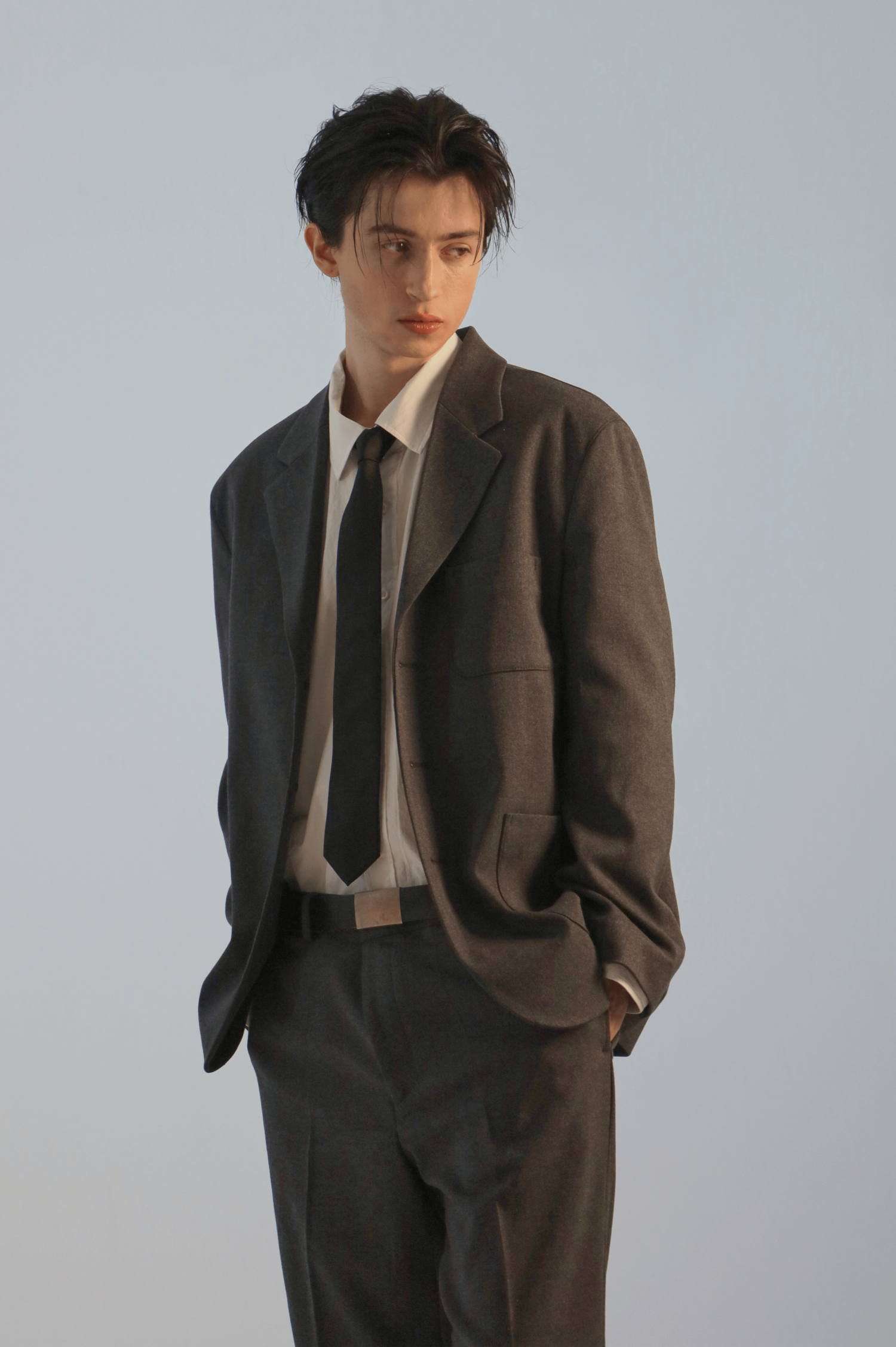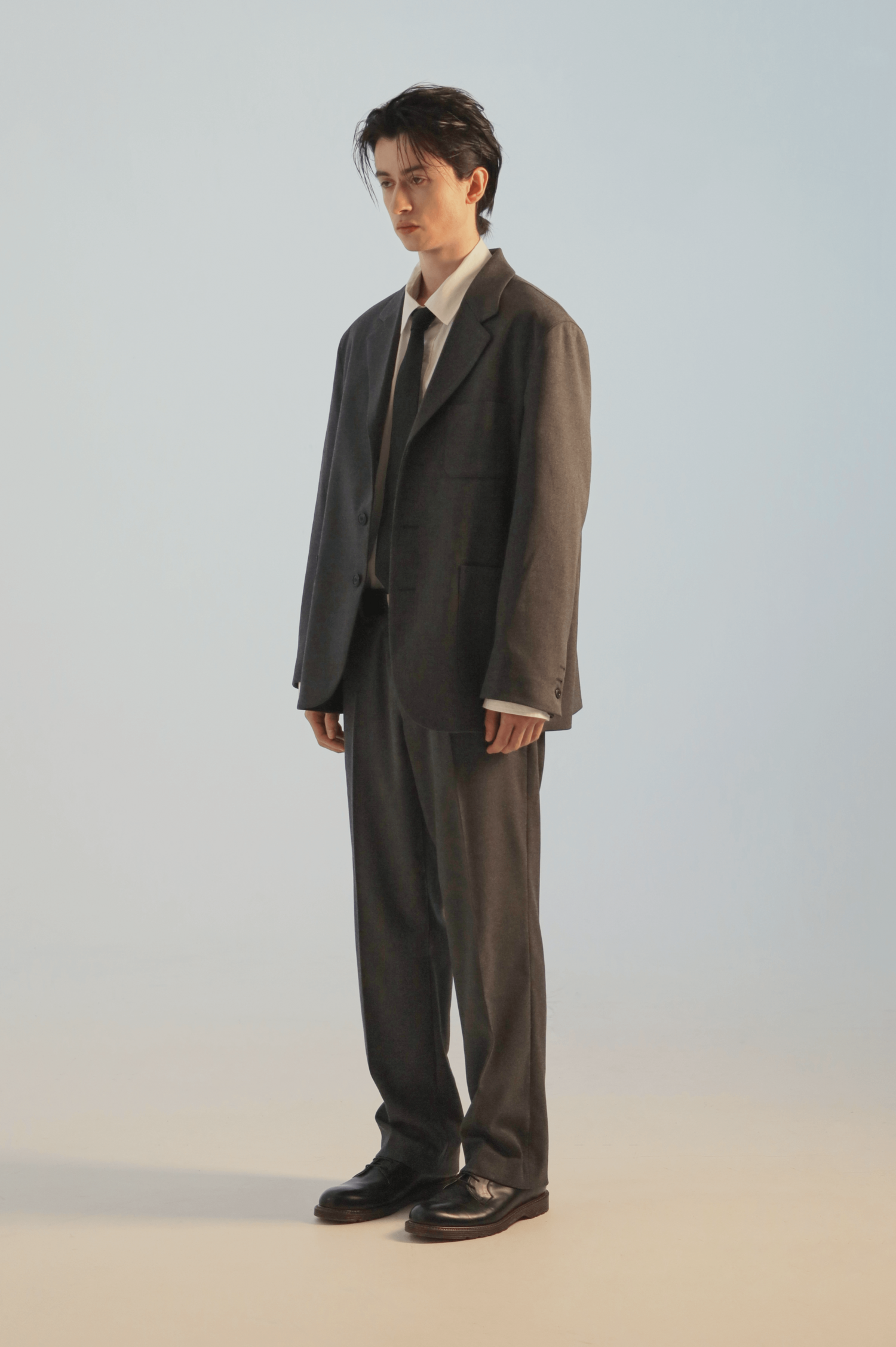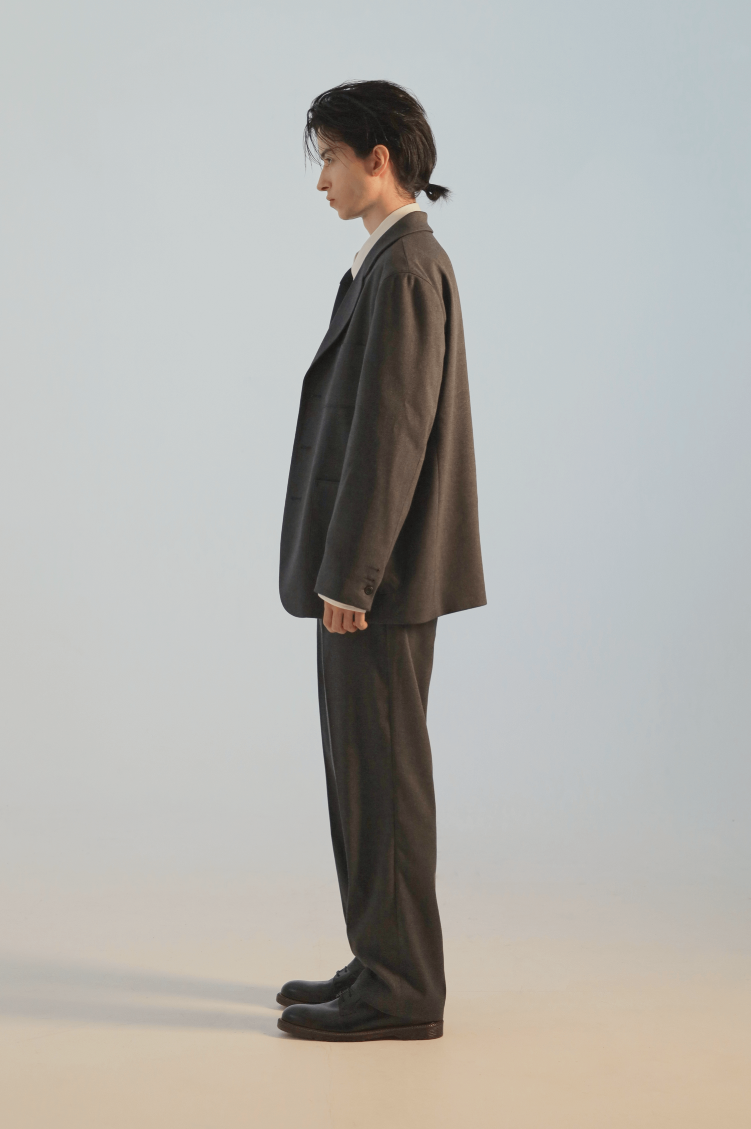 일반 정장이 아닌 여유있는 실루엣으로 기획된 캐쥬얼 셋업으로 오버핏보다는 정사이즈로 입는 것을 추천드립니다. 일반적인 정장에 사용되는 찰랑거리는 소재가 아닌 부드러운 촉감의 원단을 사용하여 일상에서도 입기에 적당합니다. 저가의 폴리단추가 아닌 소뿔단추를 사용하여 고급스러운 느낌을 더했습니다. 캐쥬얼 셋업인 만큼 드레스 셔츠 보다는 코튼 셔츠 및 니트, 티셔츠와도 자연스럽게 매치되어 다양한 연출이 가능합니다.