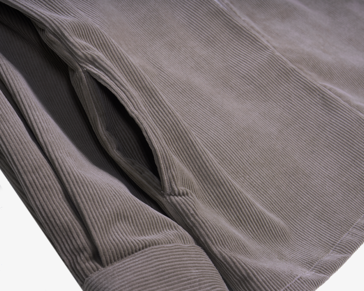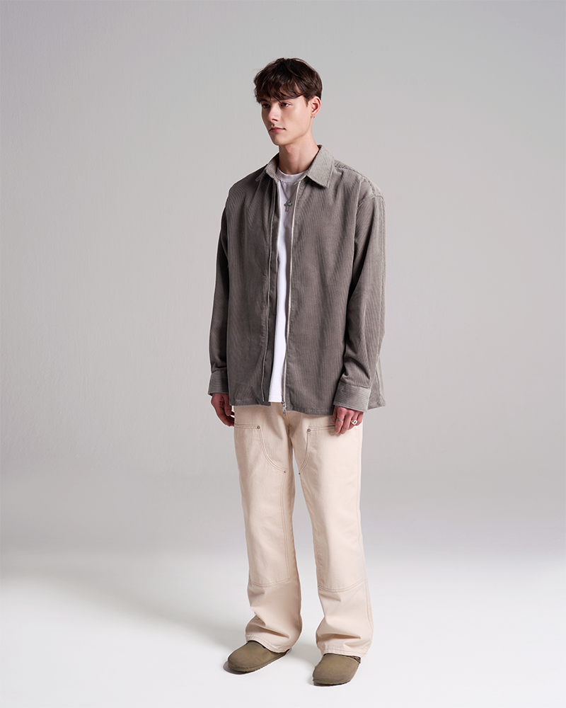 고급 코듀로이 원단을 사용하여 조직감이 단단하고 부드러우며 보온성이 뛰어난 셔츠형 아우터 입니다. YKK 사의 2웨이 지퍼를 사용해서 다양한 스타일 연출이 가능합니다. 와끼(옆구리)쪽에 주머니 디테일이 있어 일반 셔츠보다는 자켓 디테일에 좀 더 가까우며 세미오버핏의 아우터로 간절기에 활용도가 높습니다.