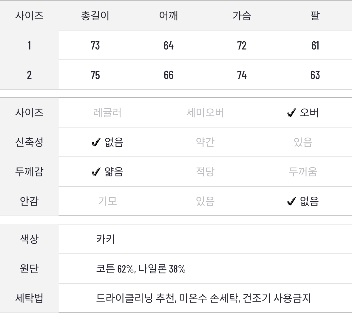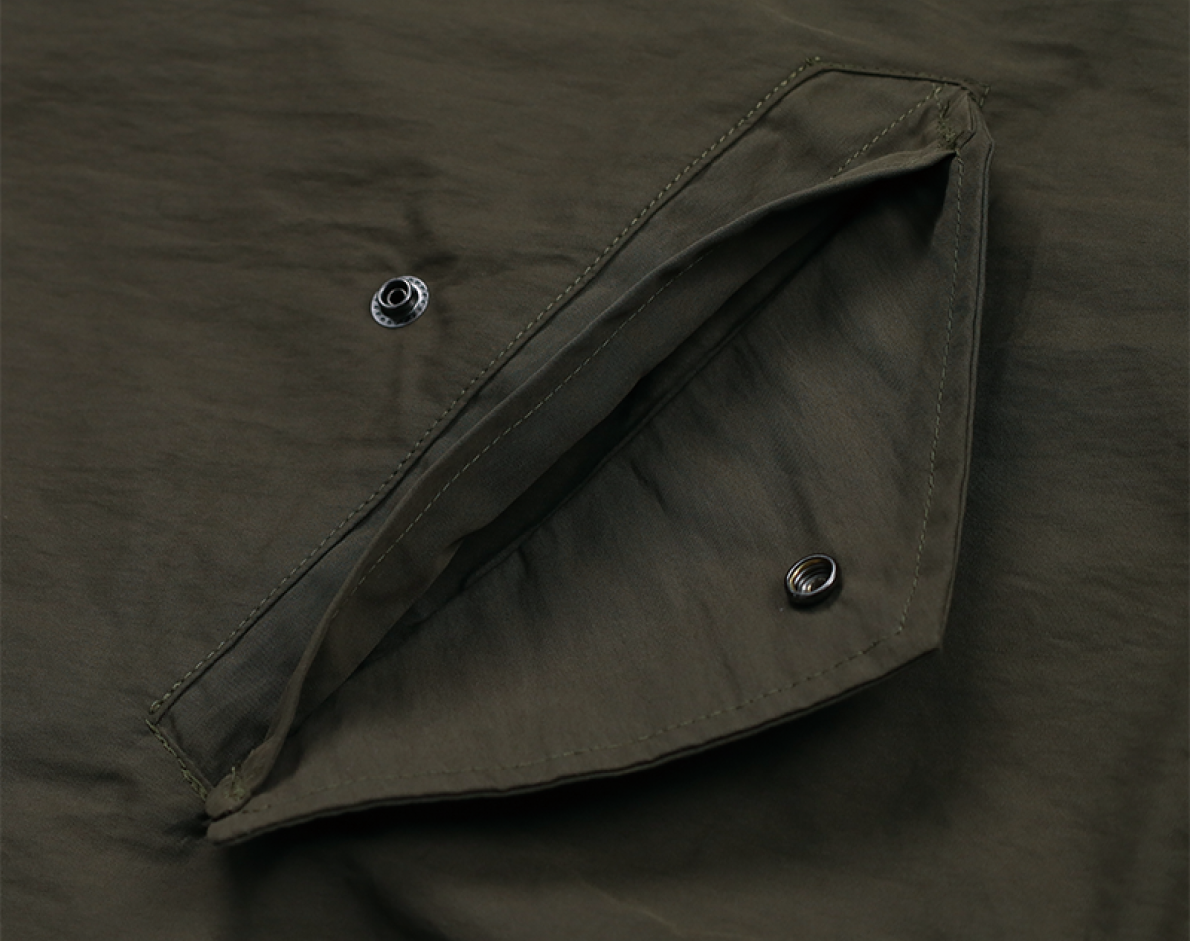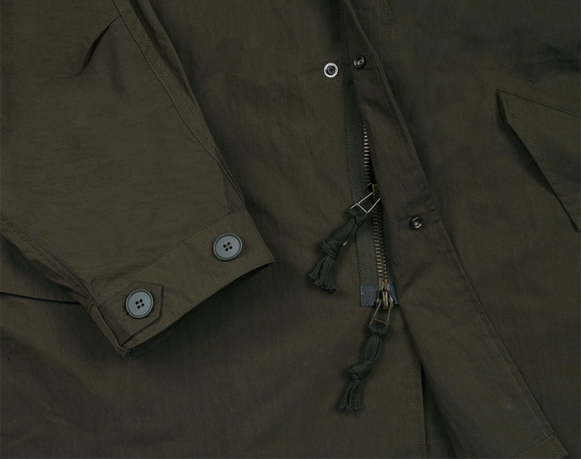 군용 필드 자켓 M65의 숏 버전입니다. 기본에 충실한 디자인으로, 남성 자켓 카테고리에서 꾸준히 사랑받는 스테디셀러입니다. 대형 의류 공장에서 높은 퀄리티의 봉제 방식을 선택하여 제작하였으며, 프리미엄 원단을 사용해 견고함과 편안함을 동시에 갖췄습니다. 간절기 자켓 특성상 너무 얇으면 형태가 흐트러지고, 두꺼우면 지나치게 빳빳해지는 단점을 고려하여, 여러 샘플을 테스트한 끝에 균형 잡힌 원단을 선정했습니다.