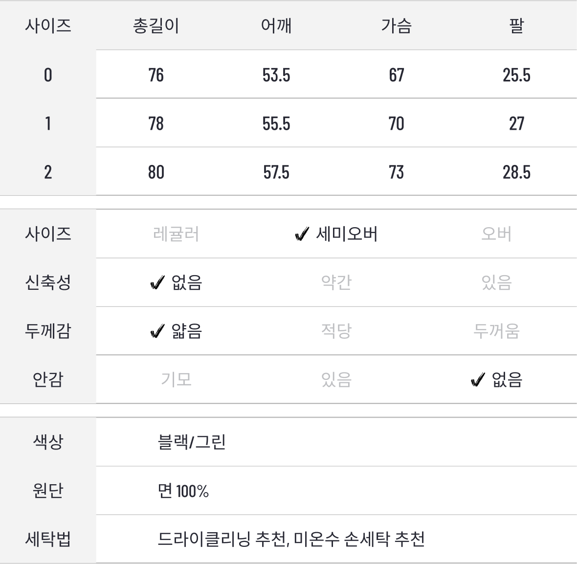 색 상 블랙 / 그린 체크