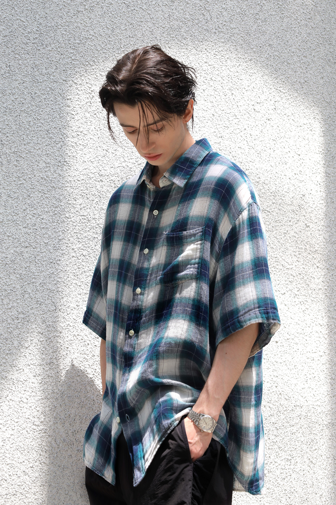 은은한 옴브레 체크 패턴이 돋보이는 반소매 셔츠입니다.부드러운 터치감의 이중 코튼 원단으로 제작되어 쾌적한 착용감을 제공하며, 한 여름까지도 시원하게 입을 수 있습니다. 일본식 고급 봉제 기법인 ‘니혼바리 봉제’로 마감되어 실이 쉽게 풀리지 않고, 전체적으로 깔끔한 실루엣을 연출합니다. 내추럴한 드롭 숄더 라인과 여유로운 세미 오버핏으로 스타일리시하면서도 편안한 무드를 완성해줍니다. 컬러에 맞춘 3mm 트로카스 자개 단추로 마무리하여 고급스러운 디테일을 더했습니다. 빈티지하면서도 웨어러블한 디자인으로 단독 착용은 물론, 다양한 하의와의 스타일링에도 손쉽게 어우러지는 아이템입니다.
