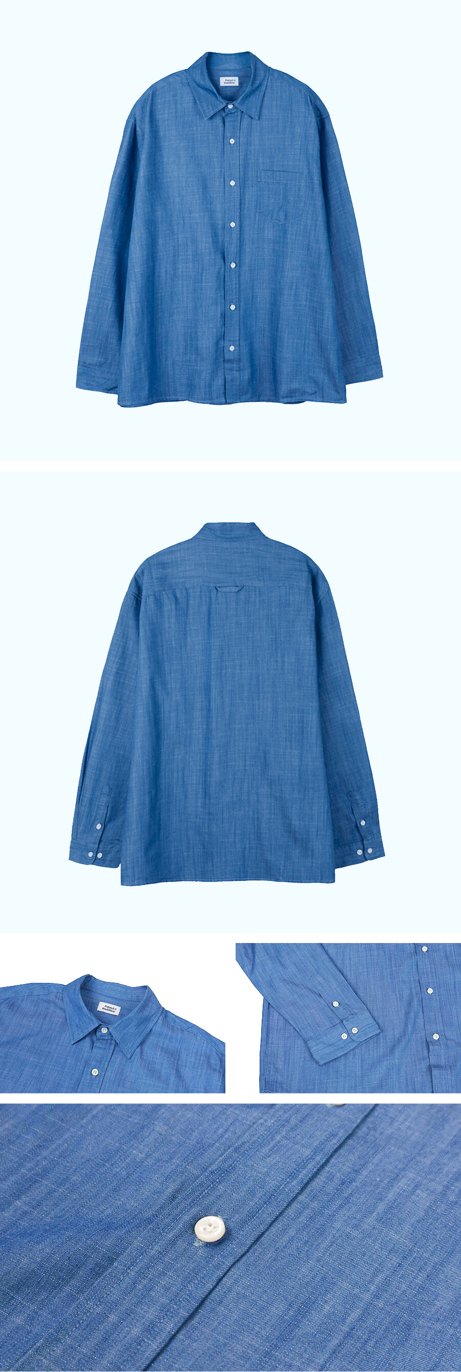 면 55%, 텐셀 45%의 오버핏 데님 셔츠로, 부드럽고 통기성이 좋아 여름부터 가을까지 시원하고 편안하게 착용 할 수 있습니다.
