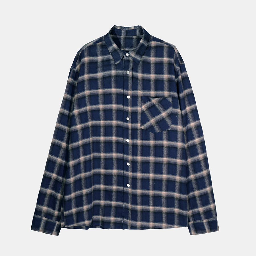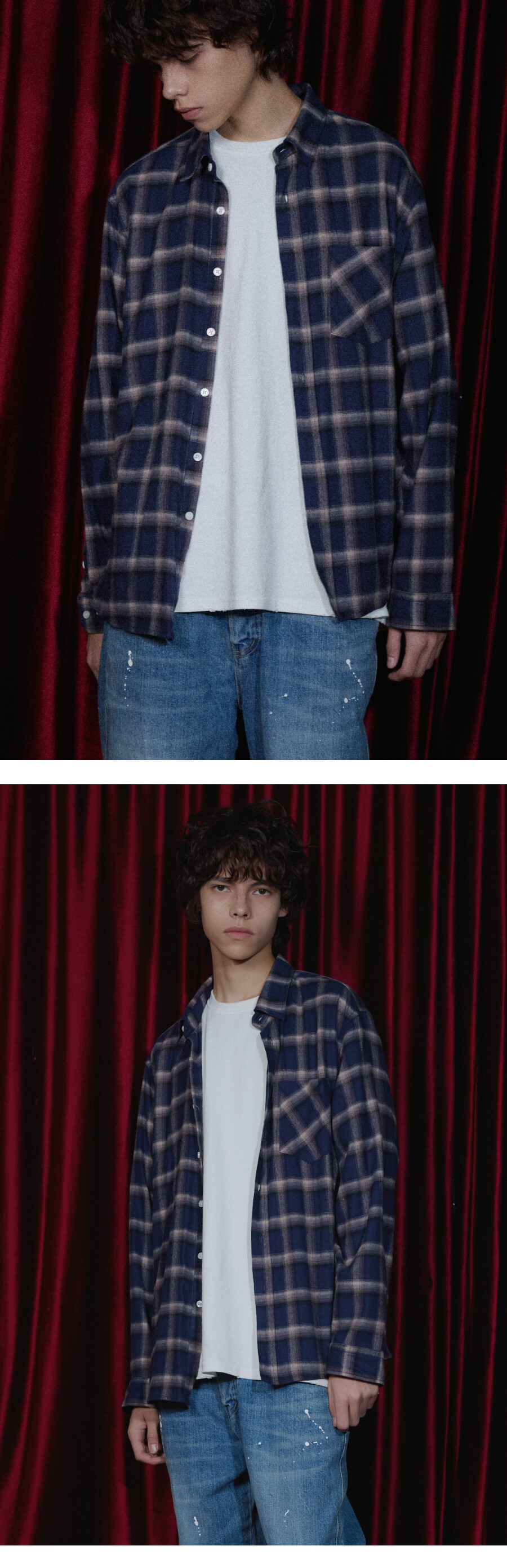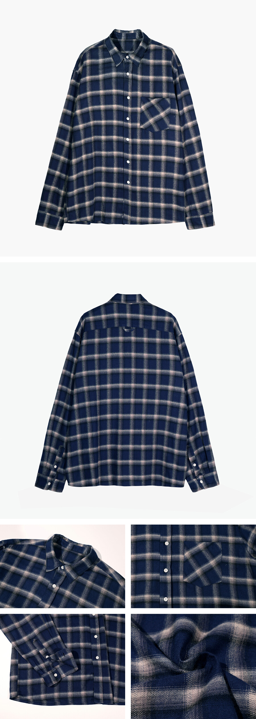 면 50%, 레이온 50% 혼방 원단의 세미 오버핏 체크 셔츠로, 자연스러운 어깨선과 여유로운 실루엣이 특징입니다. 톤 다운된 네이비 체크 패턴으로 가을 시즌에 활용도가 높으며, 가슴포켓 디테일과 앞뒤 기장 차이로 실용성을 더했습니다. 겉면 피치 처리로 부드럽고 따뜻한 착용감을 느낄 수 있으며, 두 줄 쌍침 봉제로 깔끔하게 완성했습니다.
