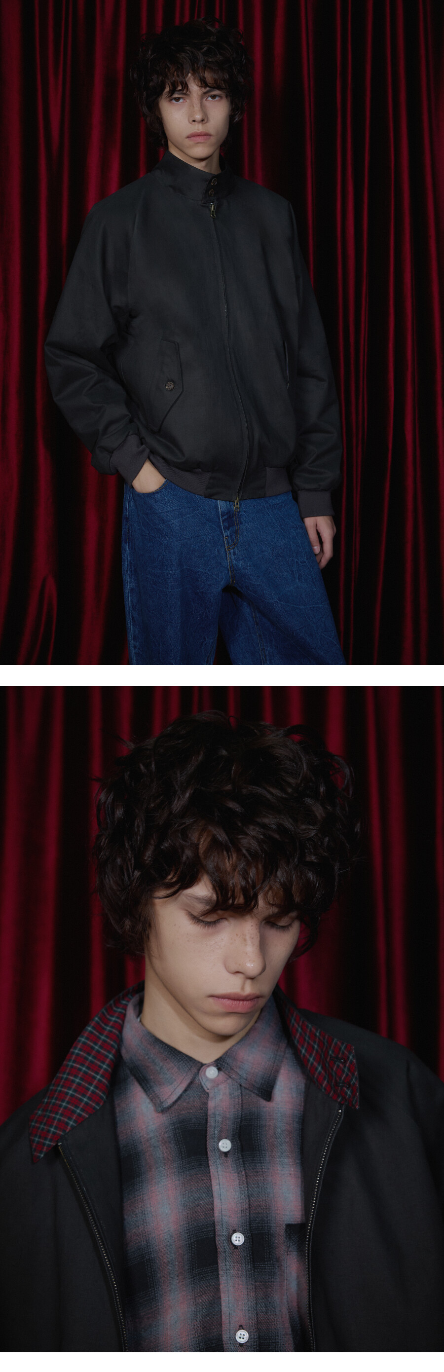 면 100%의 카치온 원단으로 제작된 해링턴 자켓으로, 클래식한 실루엣을 현대적으로 재해석했습니다. 시간이 지날수록 거친 텍스처와 빈티지한 매력이 살아나는 것이 특징이며, 하이넥 체크 배색으로 포인트를 주었습니다. 소매와 밑단에는 코튼 스판 립을 적용하여 편안한 착용감과 실용성을 더했습니다.