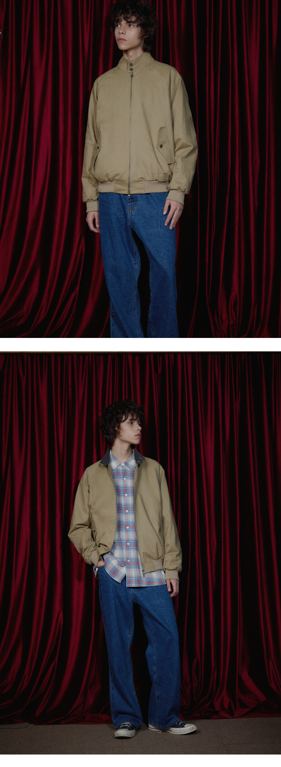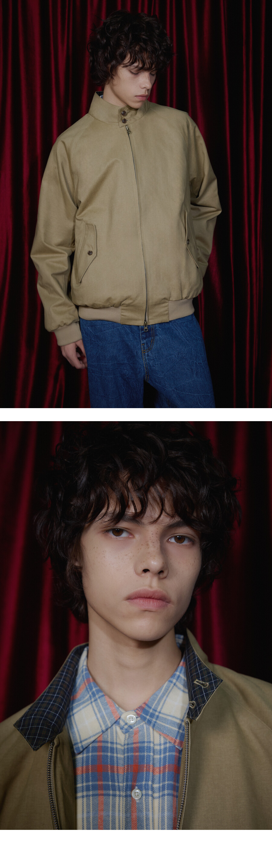 면 100%의 카치온 원단으로 제작된 해링턴 자켓으로, 클래식한 실루엣을 현대적으로 재해석했습니다. 시간이 지날수록 거친 텍스처와 빈티지한 매력이 살아나는 것이 특징이며, 하이넥 체크 배색으로 포인트를 주었습니다. 소매와 밑단에는 코튼 스판 립을 적용하여 편안한 착용감과 실용성을 더했습니다.