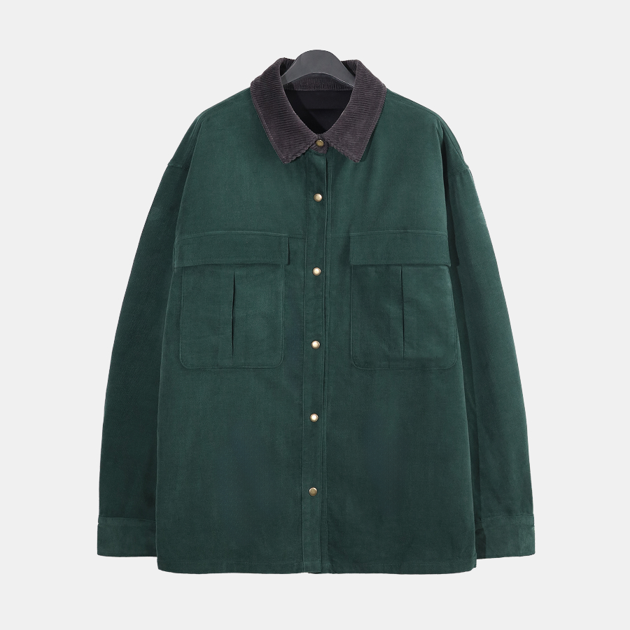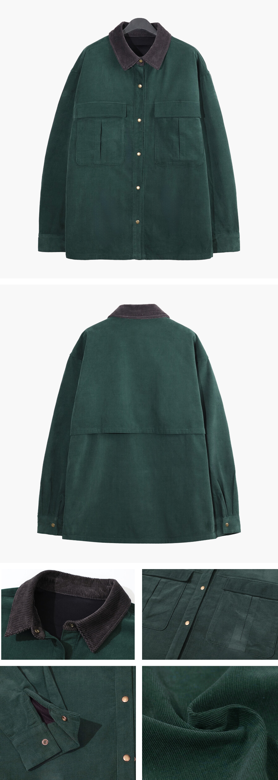 클래식한 질감의 코듀로이 원단으로 제작된 셔츠 자켓입니다. 촘촘한 조직감의 코듀로이 소재로 내구성이 뛰어나면서도 부드러운 터치감을 제공합니다. 안감은 전체 인터록 기모 원단으로 마감되어 포근하고 따뜻한 착용감을 느낄 수 있습니다. 두께감 있는 코듀로이 카라를 더해 톤온톤 포인트를 주었으며, 고급스러운 스냅 버튼으로 빈티지한 감성을 완성했습니다.